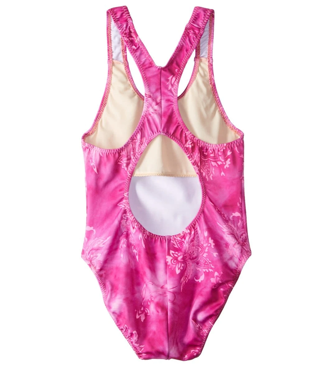 Move as much as you want to in this cute bathing suit. The Tidepools Girls Starburst Racer Back One Piece Swimsuit features a back strap system designed for optimal range of motion. Plus, the bright pink or blue print captures the summer spirit.