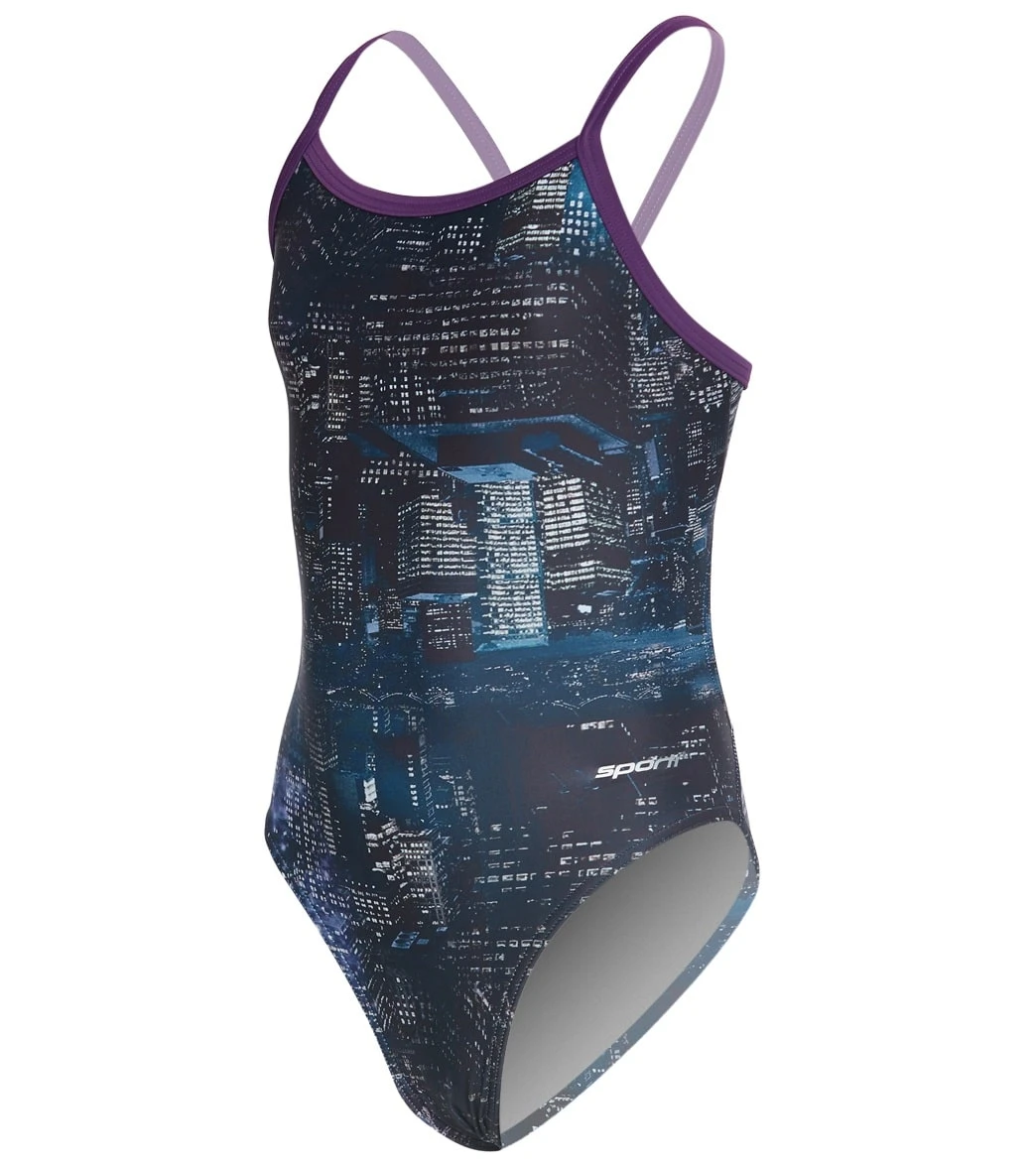 Look as amazing as the twinkling lights in the night with the Sporti City Lights Thin Strap One Piece Swimsuit Youth (22-28). Features quick-drying and long-lasting material. Choose durability in a suit that won’t drag you down.