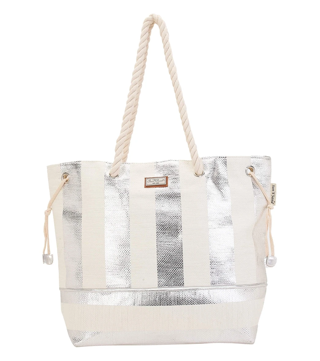 Silver Metallic Striped Shoulder Tote