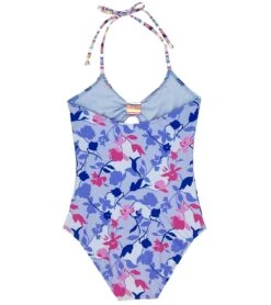 The Sporti x Alex & Gretchen Walsh Whimsy Thin Strap One Piece Swimsuit Youth (22-28) combines a wavy, water-like print with Alex and Gretchen’s favorite colors. This is a limited edition print.